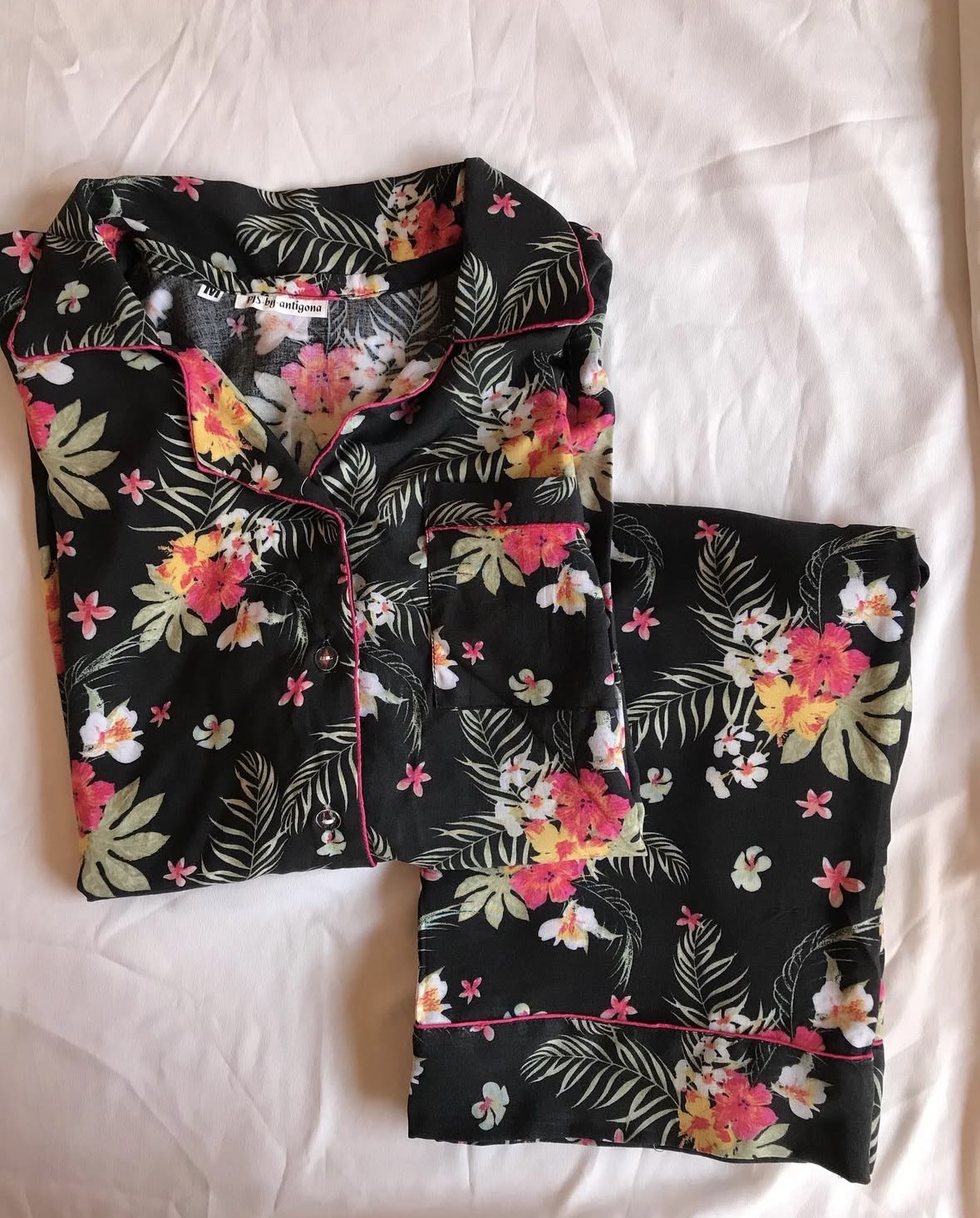 Be the first to review “Black Multi Flowers Summer Linen PJ Set”