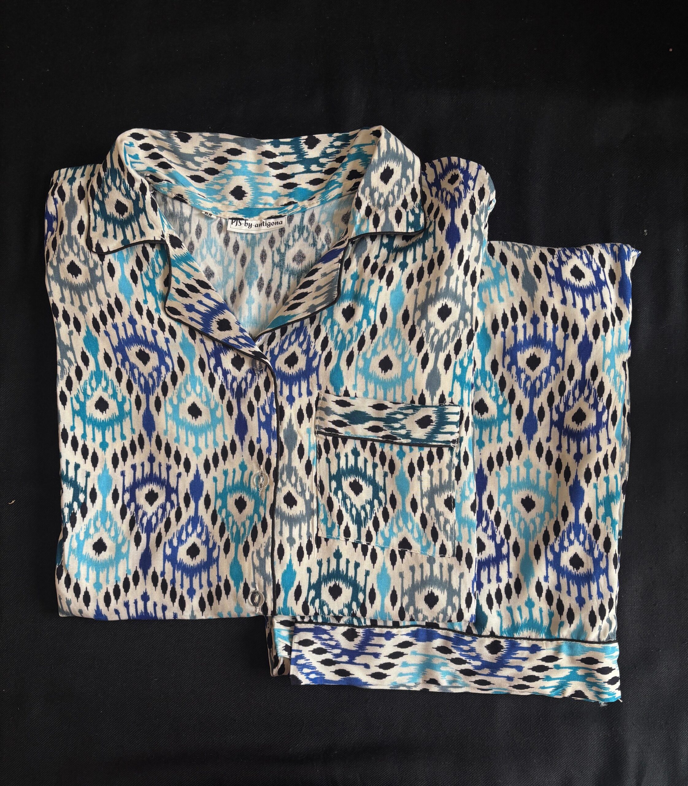 Be the first to review “Blue and Teal ikat Linen PJ Set”