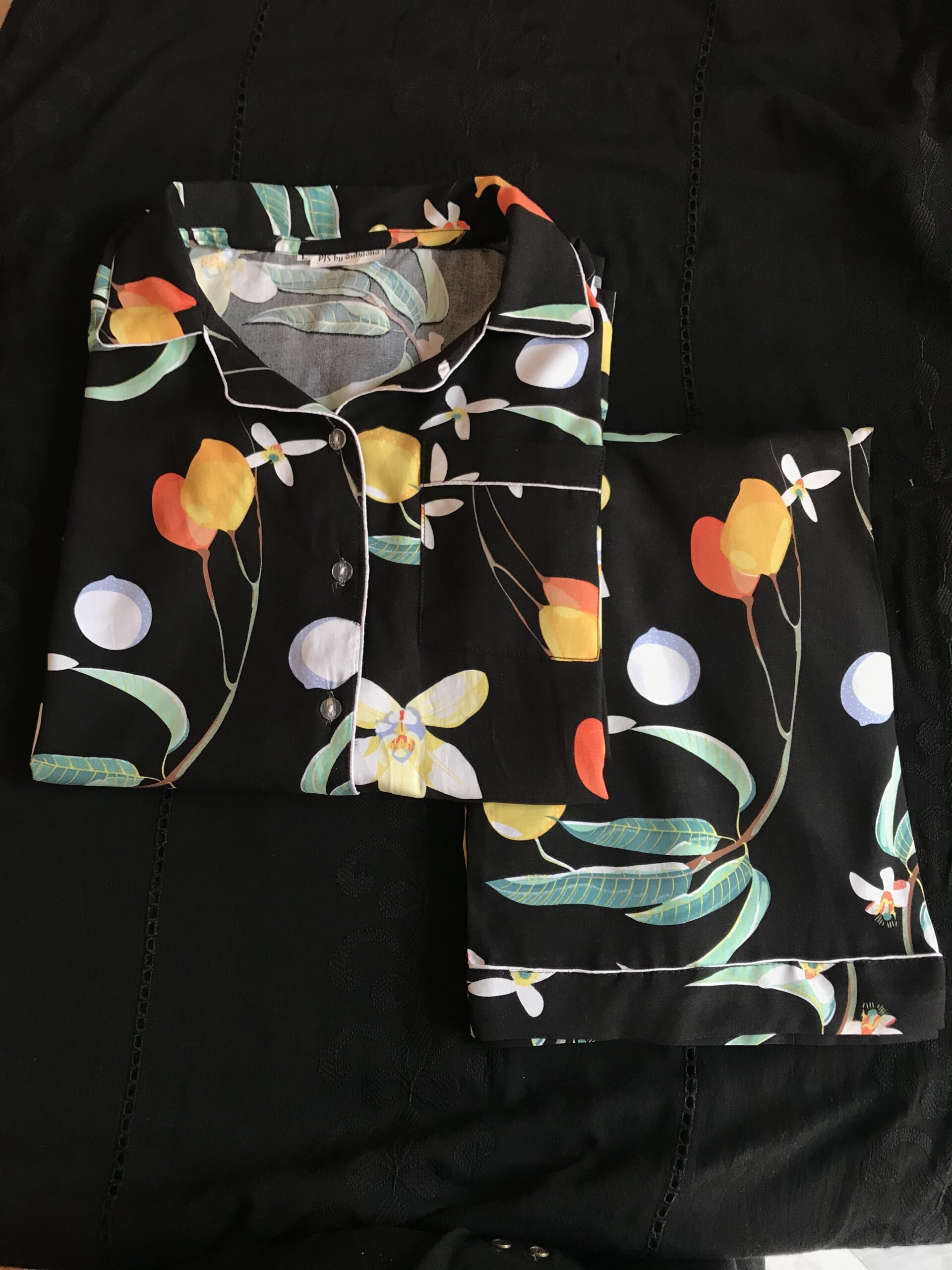 Be the first to review “Flowery Black Linen PJ Set”
