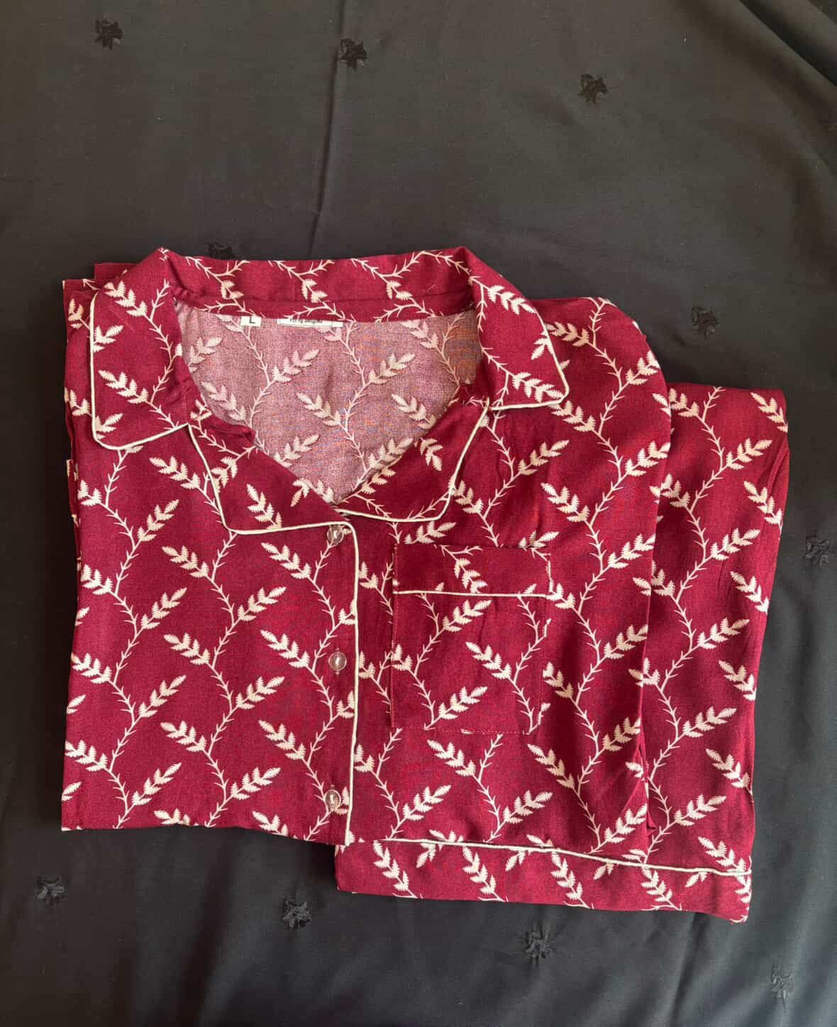 Be the first to review “Mehroon Leafy Summer Linen PJ Set”